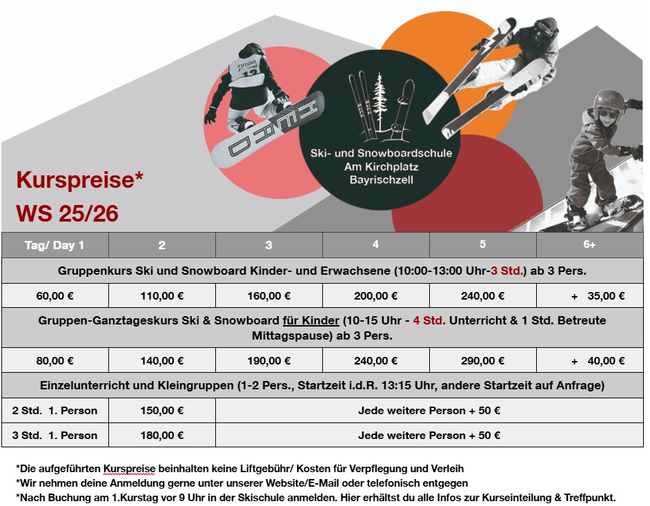 Ganz egal, ob du lieber in einer Gruppe oder im Privatunterricht, in einem Kinder- oder Erwachsenenkurs das Ski oder Snowboarden erlernen oder verbessern willst – wir garantieren, dass durch eine enge Betreuung und eine kleine Kursgröße auf individuelle Voraussetzungen und Bedürfnisse eingegangen wird.